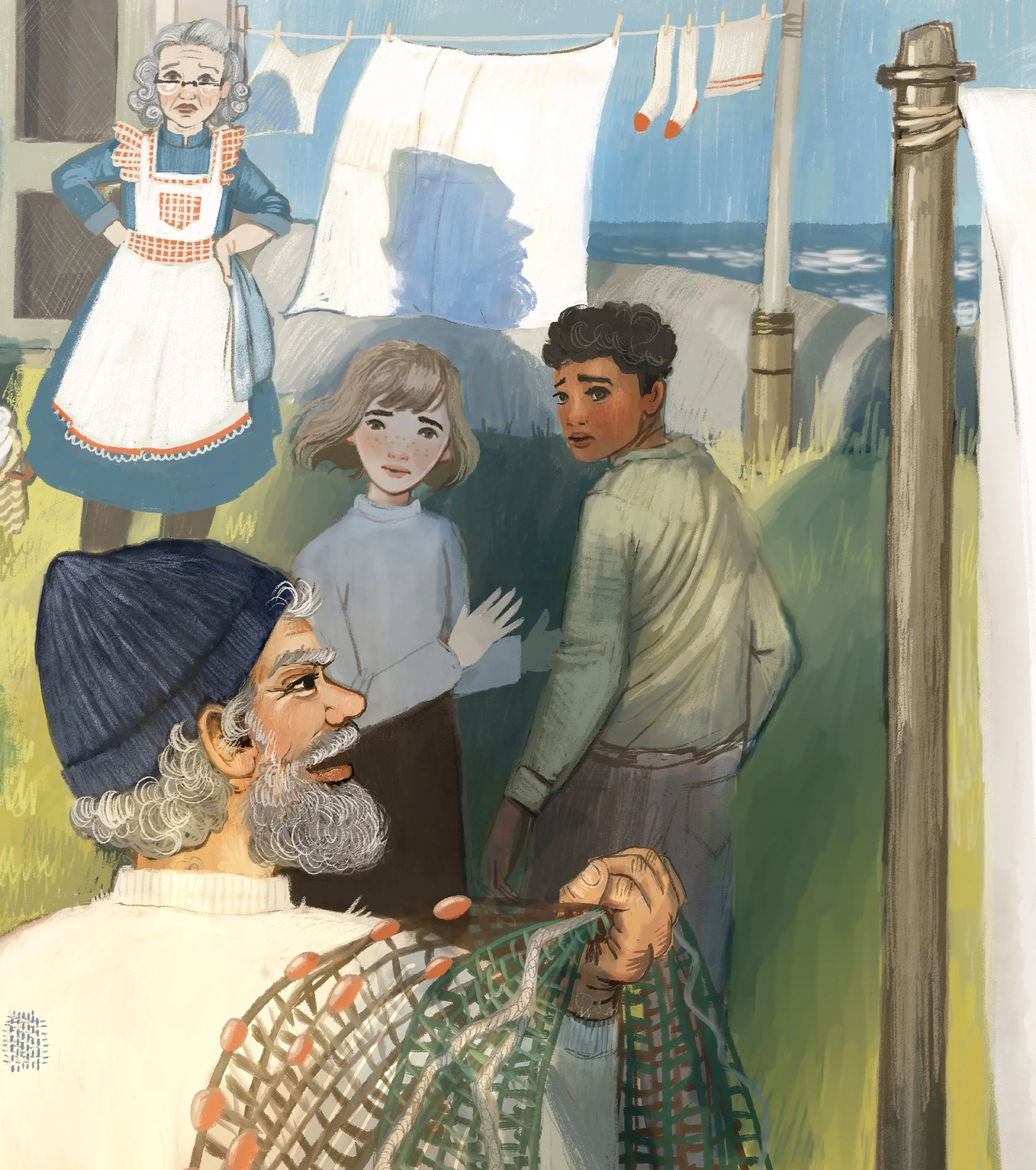 It’s up to Peggy and Georgie, and some helpful—and not-so-helpful—neighbours, to solve the mystery of the Ghost Girl and help her return home. On the way they’ll uncover mysterious sea chests, old sea captains’ yarns, and fish huts bursting with flotsam.