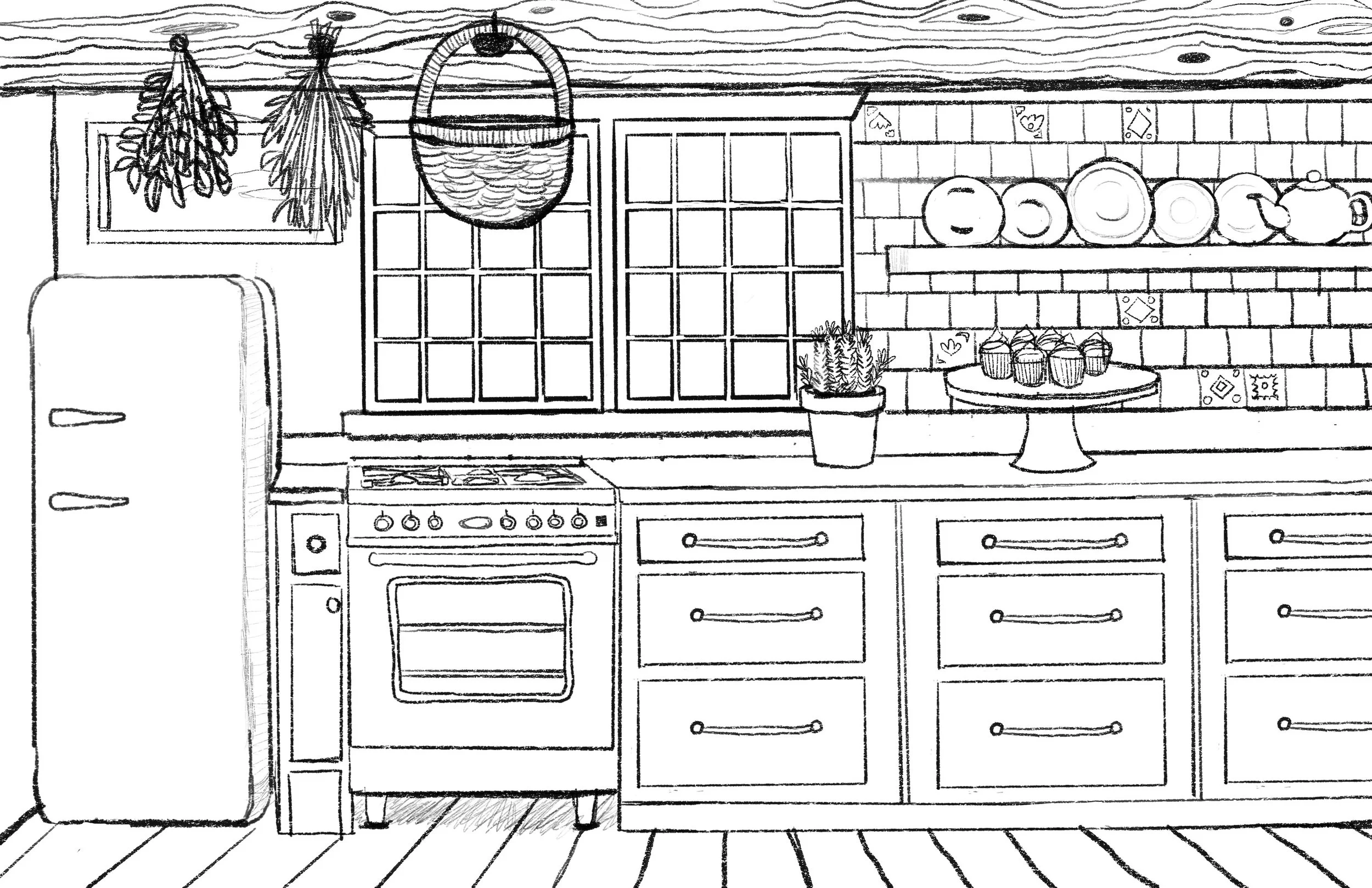 4 pages of rooms to colour
