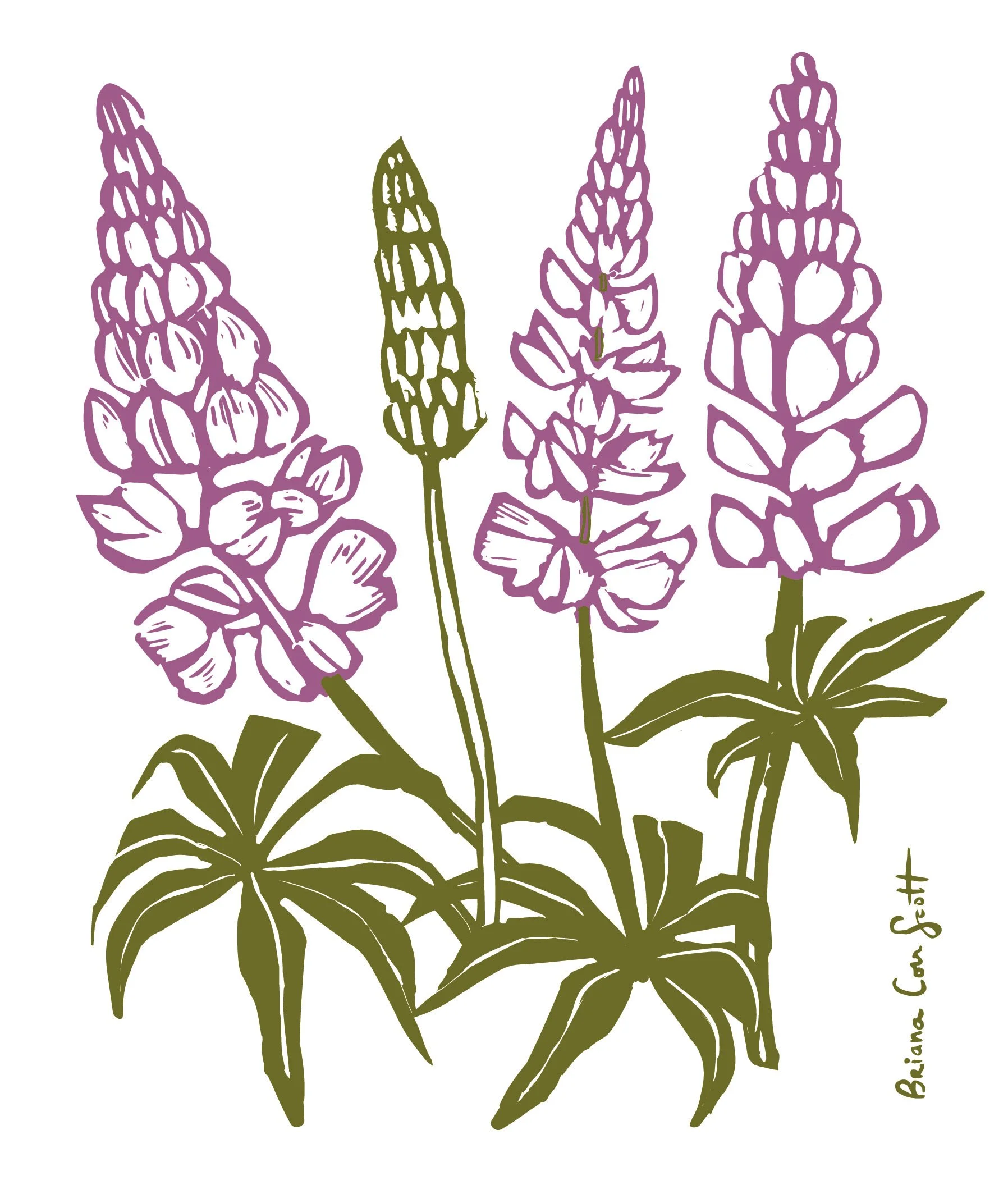 Lupins, Fiddle Heads, thistles and sandpipers.